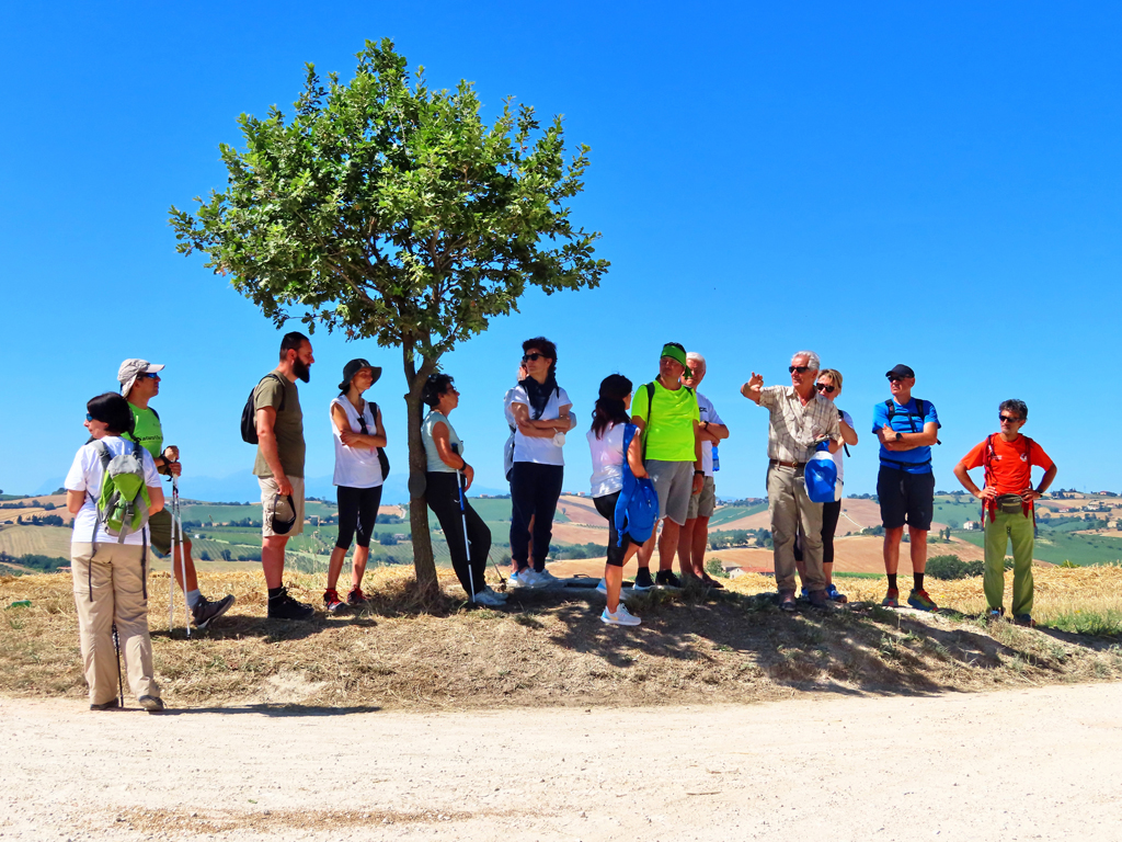 Si tratta di percorsi di trekking con protagoniste le nostre ‘infinite campagne’, che hanno visto la loro inaugurazione domenica 19 giugno, quando più di 40 persone hanno partecipato alla prima escursione nel territorio compreso tra i comuni di Recanati, Montefano e Osimo, lambito dal fiume Musone. “Tre paesi, un fiume e un fiumicello”: questo è il titolo che abbiamo voluto dare alla passeggiata; partita da Bagnolo alle ore 9.00, essa si è avvalsa della presenza dello storico Marco Moroni che è intervenuto lungo il cammino per leggere storicamente i paesaggi attraversati.