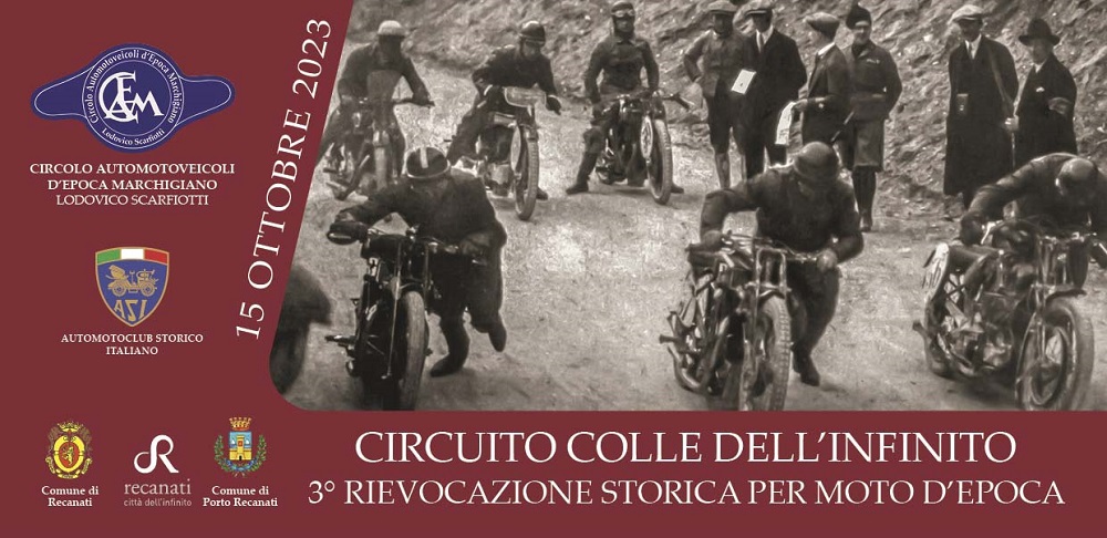 Questa grande tradizione verrà ricordata domenica 15 ottobre con la terza edizione rievocativa del Circuito “Colle dell’Infinito” per moto d’epoca costruite entro il 1985. Le operazioni preliminari si svolgeranno in Piazza Leopardi dalle ore 8:30 alle 9:15, e dopo il saluto di benvenuto delle autorità i protagonisti sfileranno lungo il percorso del Circuito delle Mura per poi visitare il Museo Franco Uncini che ricorda la prestigiosa carriera del recanatese miglior pilota privato del motomondiale e poi campione del mondo nel 1982 con la Suzuki 500. La luminosa carriera di Uncini è inoltre stata seguita ai box da un altro importante recanatese del settore, il capotecnico Mario Ciamberlini. A seguire si effettuerà un giro turistico lungo il percorso del “Colle dell’Infinito” per poi concludere la manifestazione all’Osteria del Moro in località Potenza Picena, con il pranzo ed il saluto dello staff organizzatore.
