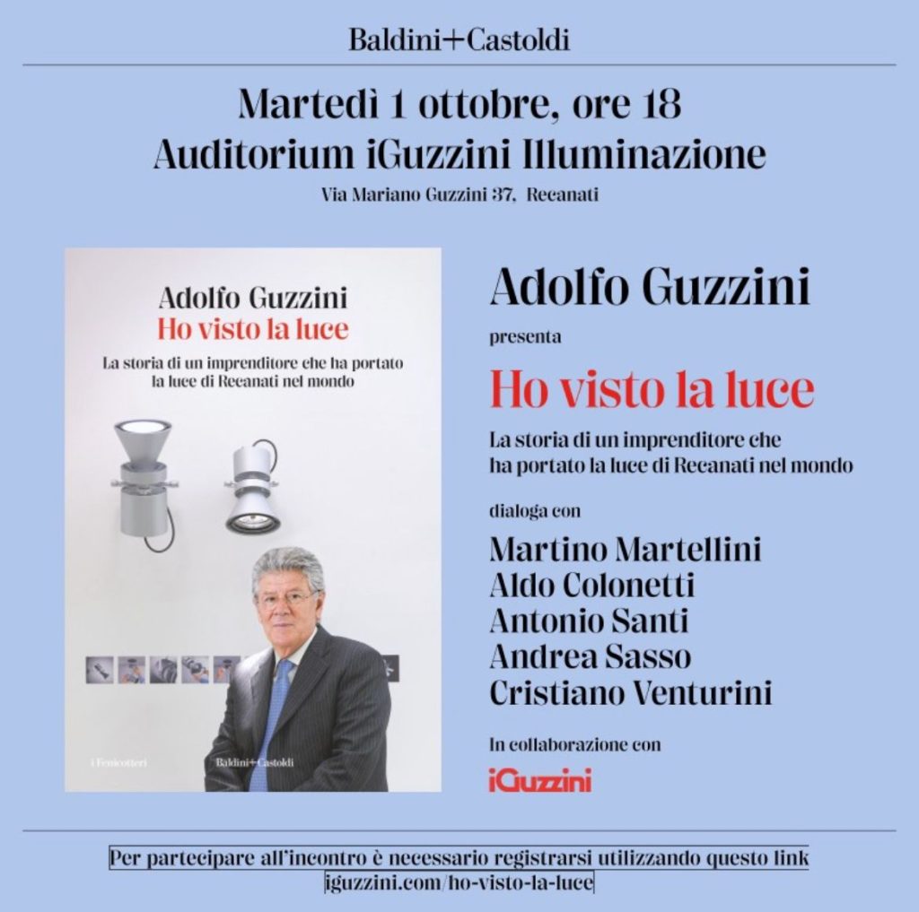 “Sono veramente felice ed orgoglioso che Adolfo Guzzini abbia presentato il suo libro “Ho visto la luce” in iGuzzini. Auditorium tutto esaurito con una nutrita platea istituzionale, rappresentanti delle forze dell’ordine, amici, concittadini e dipendenti. Tanta emozione e partecipazione attorno all’imprenditore che assieme alla sua famiglia ha dato inizio a questo viaggio bellissimo che si chiama iGuzzini.