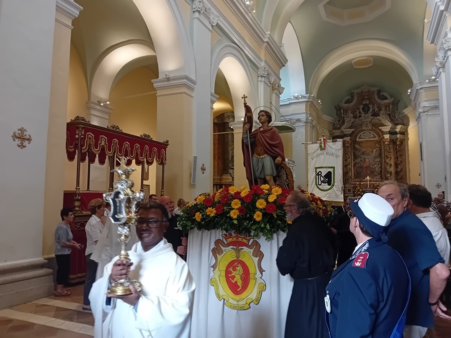 Si è inoltre tenuta la tradizionale processione per le vie del centro storico che, partendo dalla chiesa di San Vito e attraversando Via Roma, ha fatto sosta davanti all’Ospedale Santa Lucia per poi proseguire in Via Badaloni e, di seguito, in Via Cesare Battisti per poi imboccare, in salita, Porta San Domenico, tornando così verso la chiesa del Santo Patrono. Alla Santa Messa ha preso parte la Giunta comunale affiancata, per la prima volta, dal presidente della Regione Marche Francesco Acquaroli e dal presidente del Consiglio regionale Dino Latini: una presenza che rafforza i legami della Città con la Regione nel solco della filiera istituzionale, grazie agli ottimi rapporti istituzionali consolidati quest’anno tra il sindaco Pepa e la Giunta regionale. “La presenza a Recanati delle massime istituzioni regionali nel giorno della Festa patronale è un evento che pone la giusta attenzione sulla nostra Città e che ci dimostra quanto le Giunte siano vicine” ha concluso Pepa.